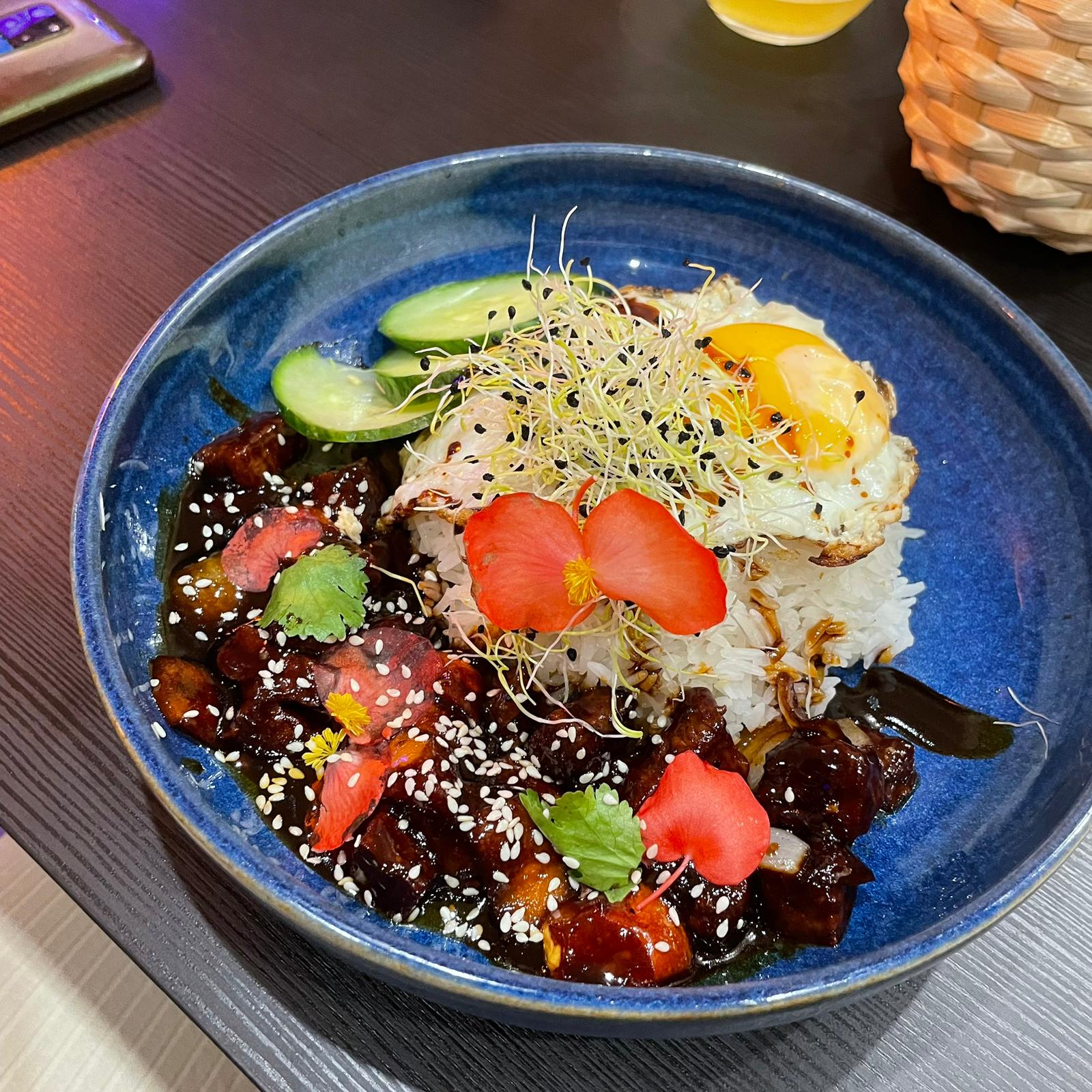 assez déçu, la nourriture était extrêmement salée et rien d'impressionnant. le bœuf avait également un goût carbonisé, probablement à cause de la sauce. bon service et bonne ambiance quand même.