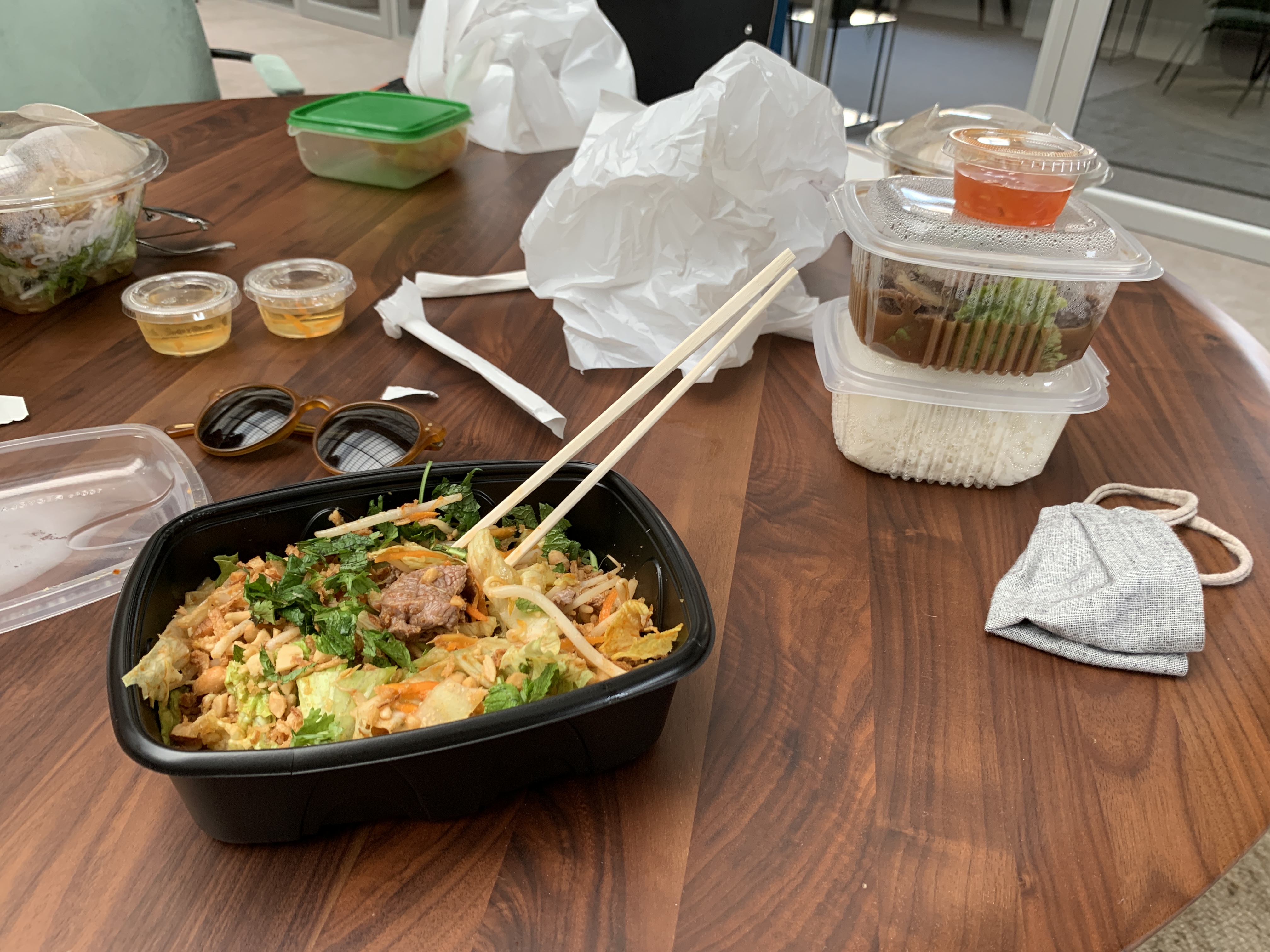 Bon petit restaurant vietnamien J’ai pris des classiques : Nem au crevette et des nouilles sautées au poulet