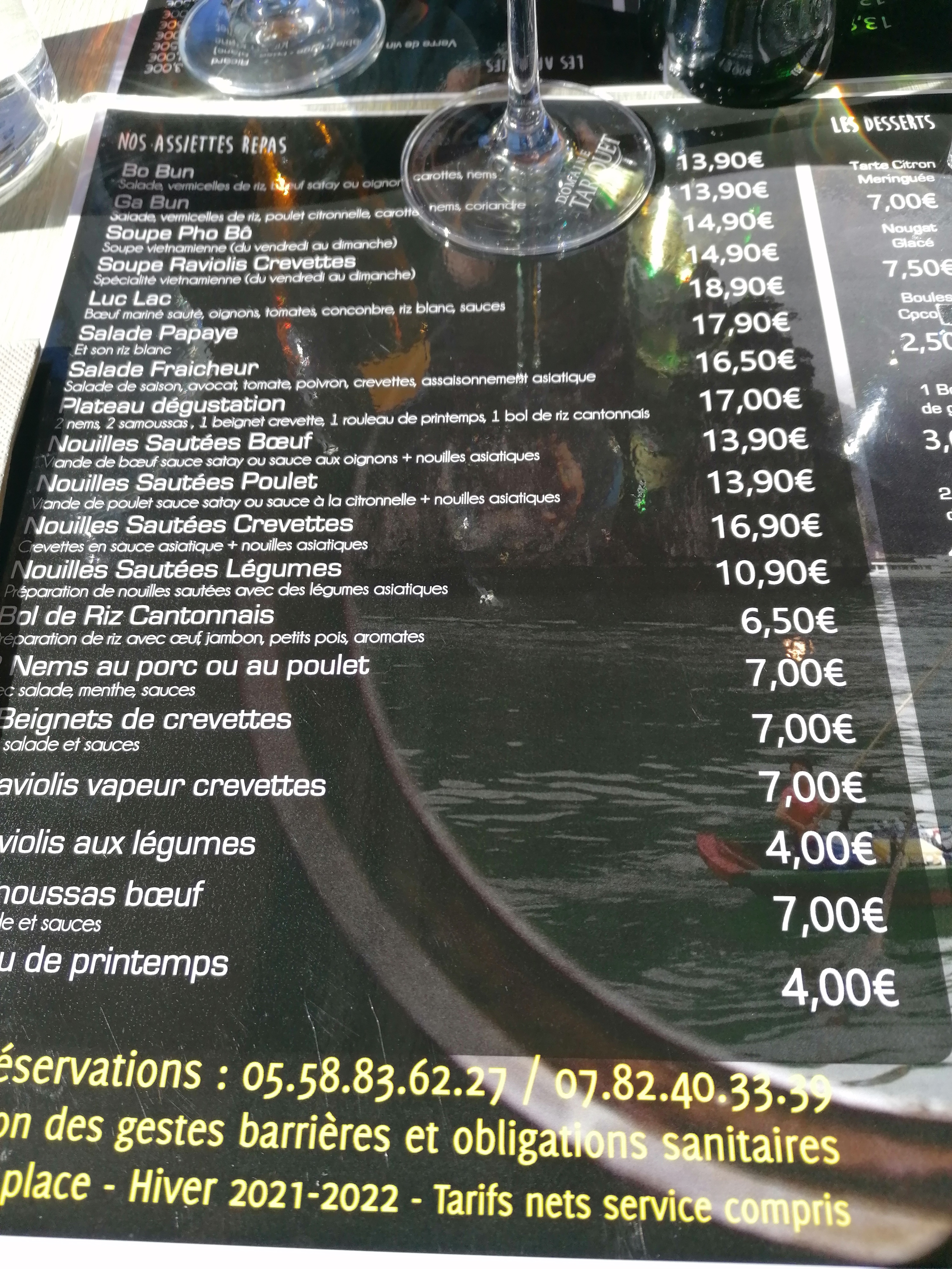 Une belle découverte sur Mimizan plage ! Du choix, des assiettes de qualité et copieuses. Le Bo bun et le Ga bun sont très réussis. A lui seul, ce plat vous rassasie, les prix sont très corrects au regard de la quantité et qualité ! Impeccable, étant sur place, je reviendrai !