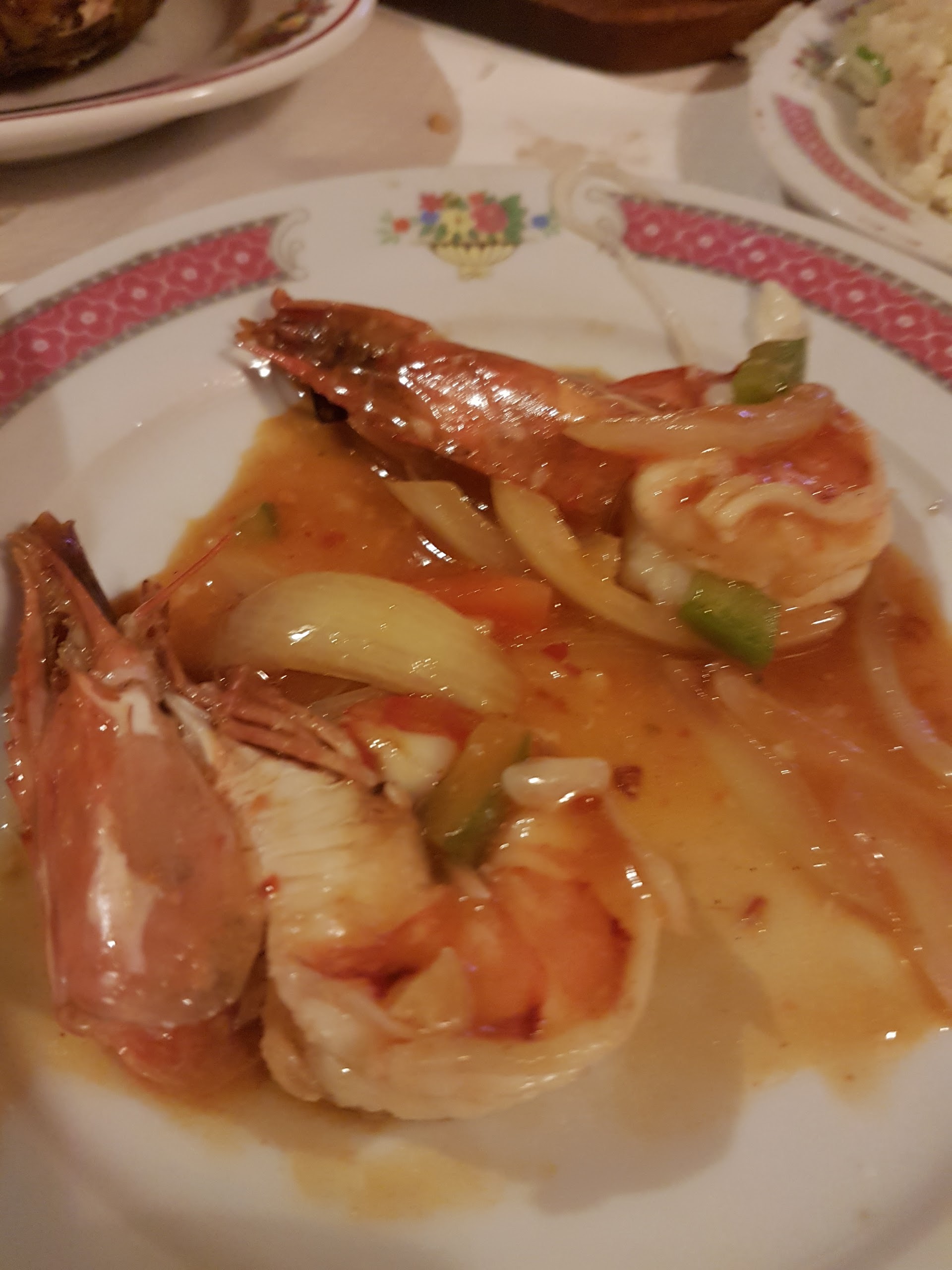 J'ai pu observer que certaines personnes étaient reparties sans finir les plats. Effectivement, mis à part les nems assez bons, je n'ai pu finir la sauce insipide au sate des 7 crevettes noyées au milieu de poivrons surabondants. Le riz était quant à lui carrément insuffisant et restant sur notre faim, nous avons fini le repas à la maison.