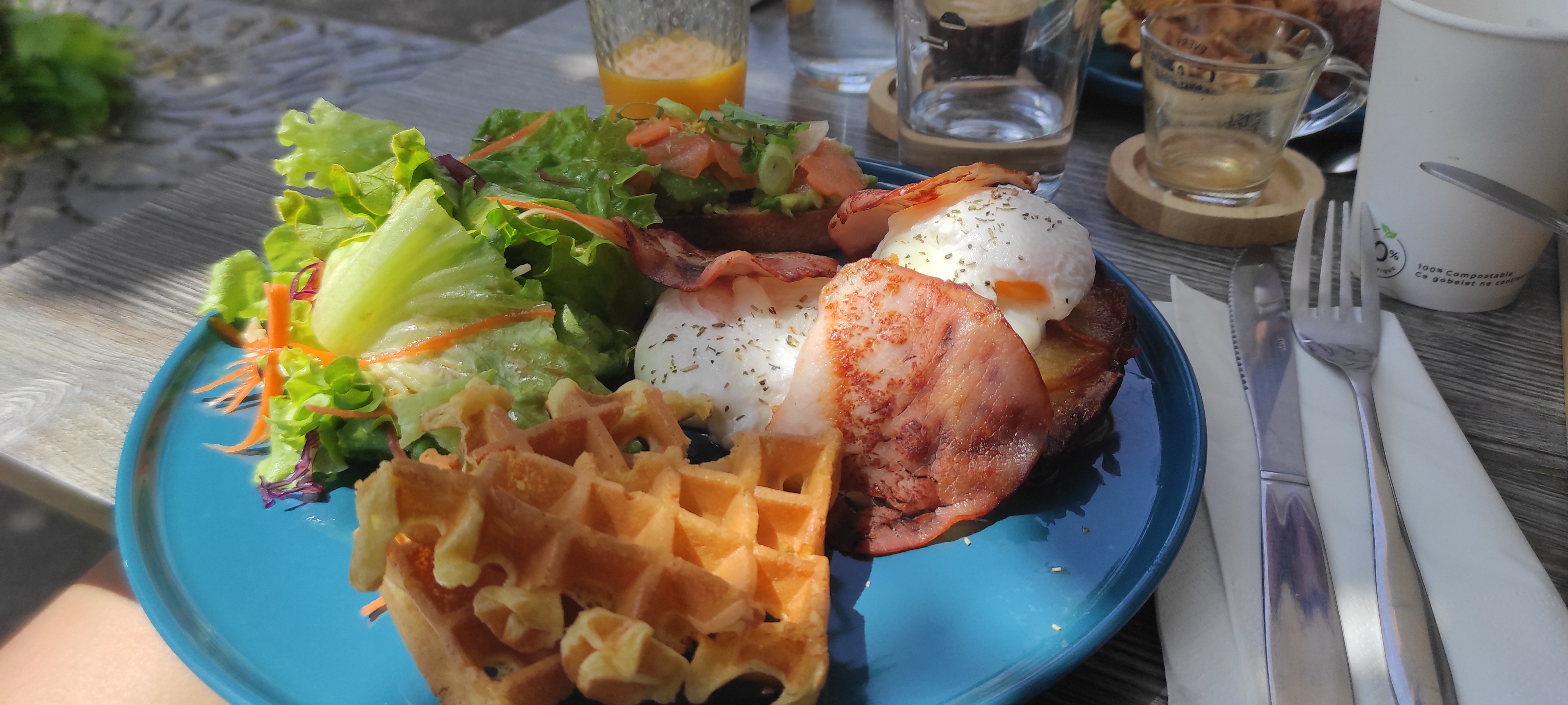 Super brunch du dimanche en terrasse au soleil. L'assiette est copieuse. L'accueil est chaleureux