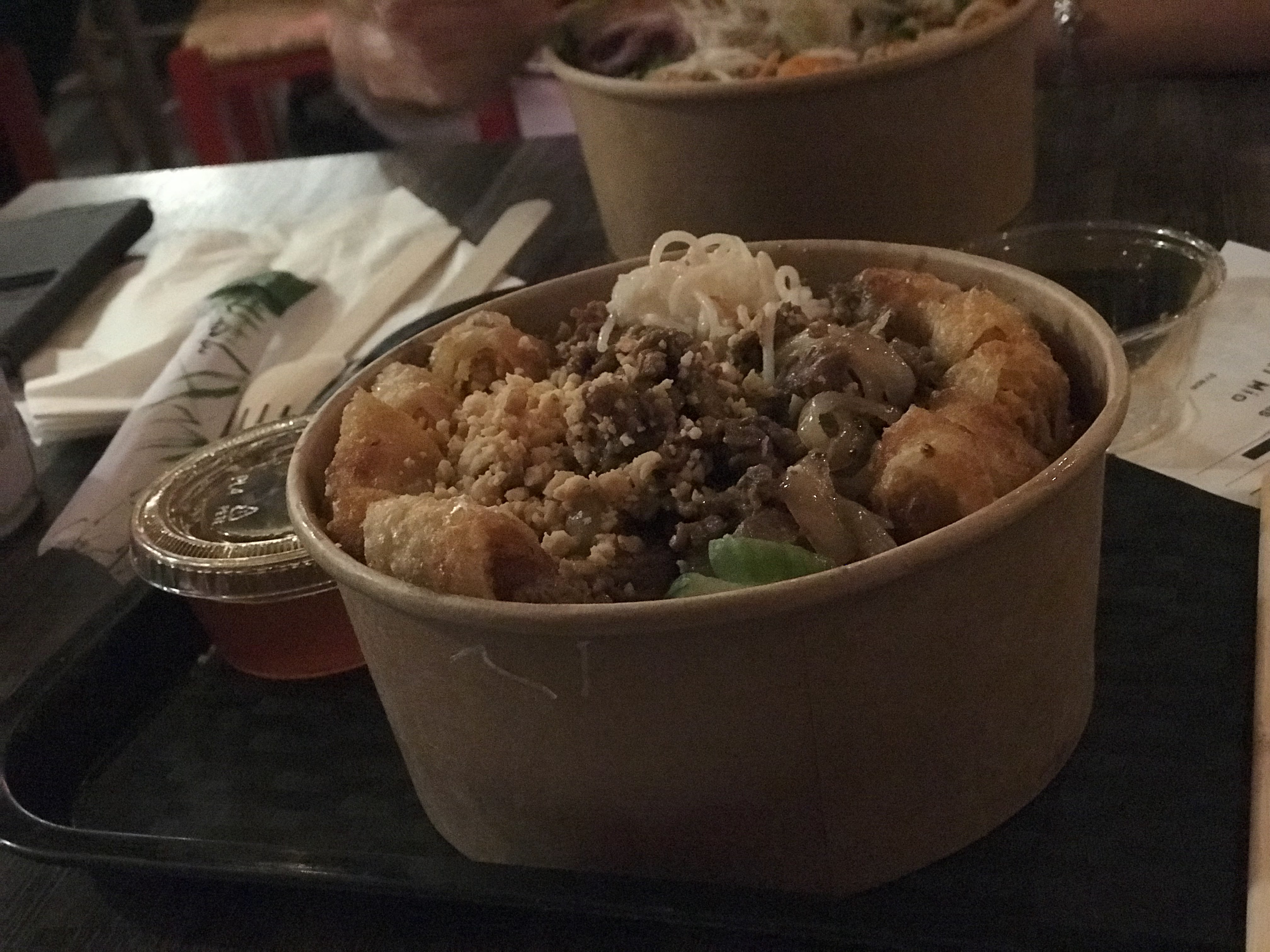 Service rapide et déco sympa, en revanche j’ai été déçu du plat. Dans mon bo bun mio le bœuf sauté était froid (presque congelé, ce qui n’est pas très rassurant). Pour en avoir déjà mangé dans plein d’adresses, c’est la première fois qu’il est servi ainsi.