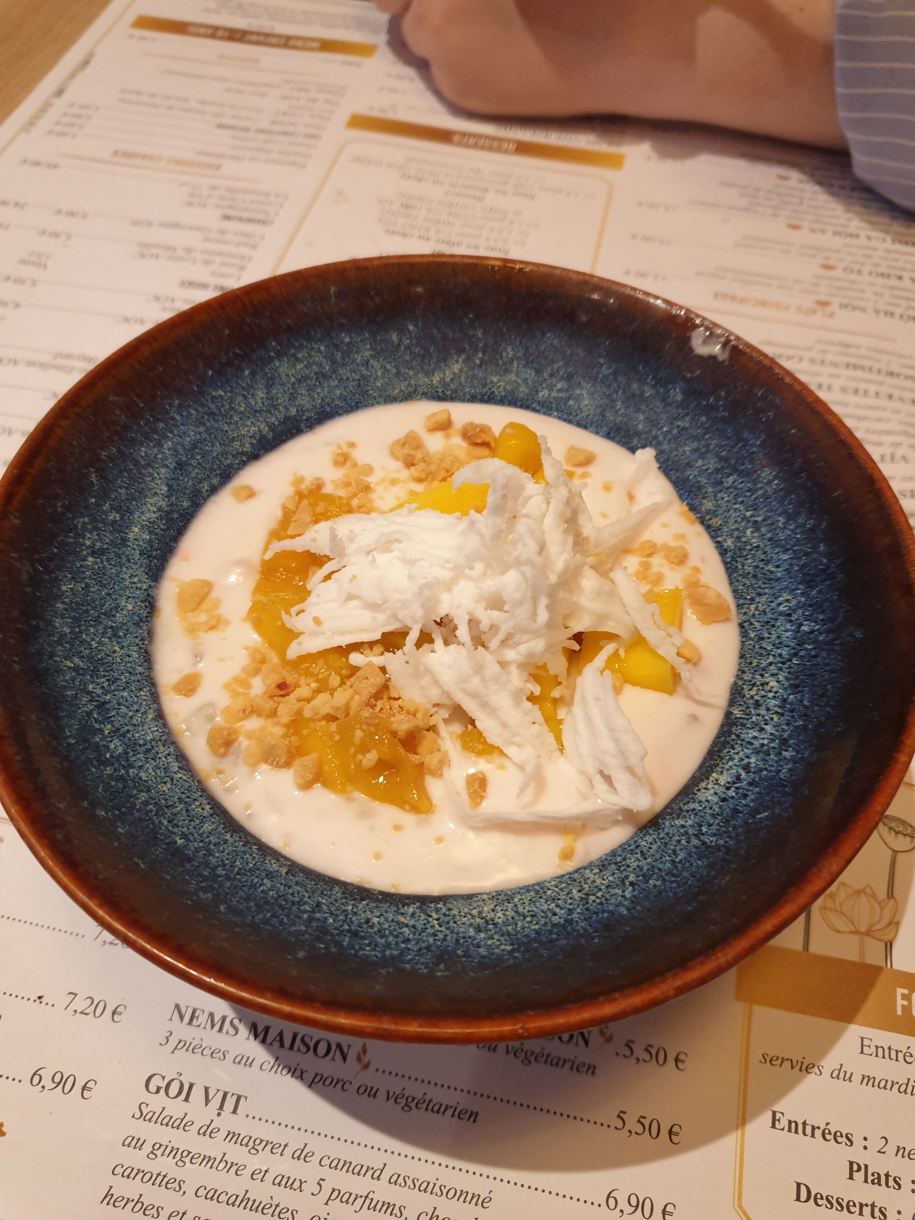 Nems excellents, pour les plats on avait pris des plats de bœufs en bouillon avec des pâtes de riz. Ces plats ne nous en pas plu, bien cuisiné certainement mais les saveurs étaient fades pour notre goût ( à nous) le pho xao poulet était très bon. Desserts avis partagés. Le plat à base de tapioca et banane n'était pas non plus à notre goût je m'attendais à ce que la banane fut cuite avec le tapioca, le côté liquide rose ne m'a pas convenu. Pour l'ambiance et la déco, un grand bravo. Les serveurs sont très sympas.Chouette resto. Nous y retournerons.
