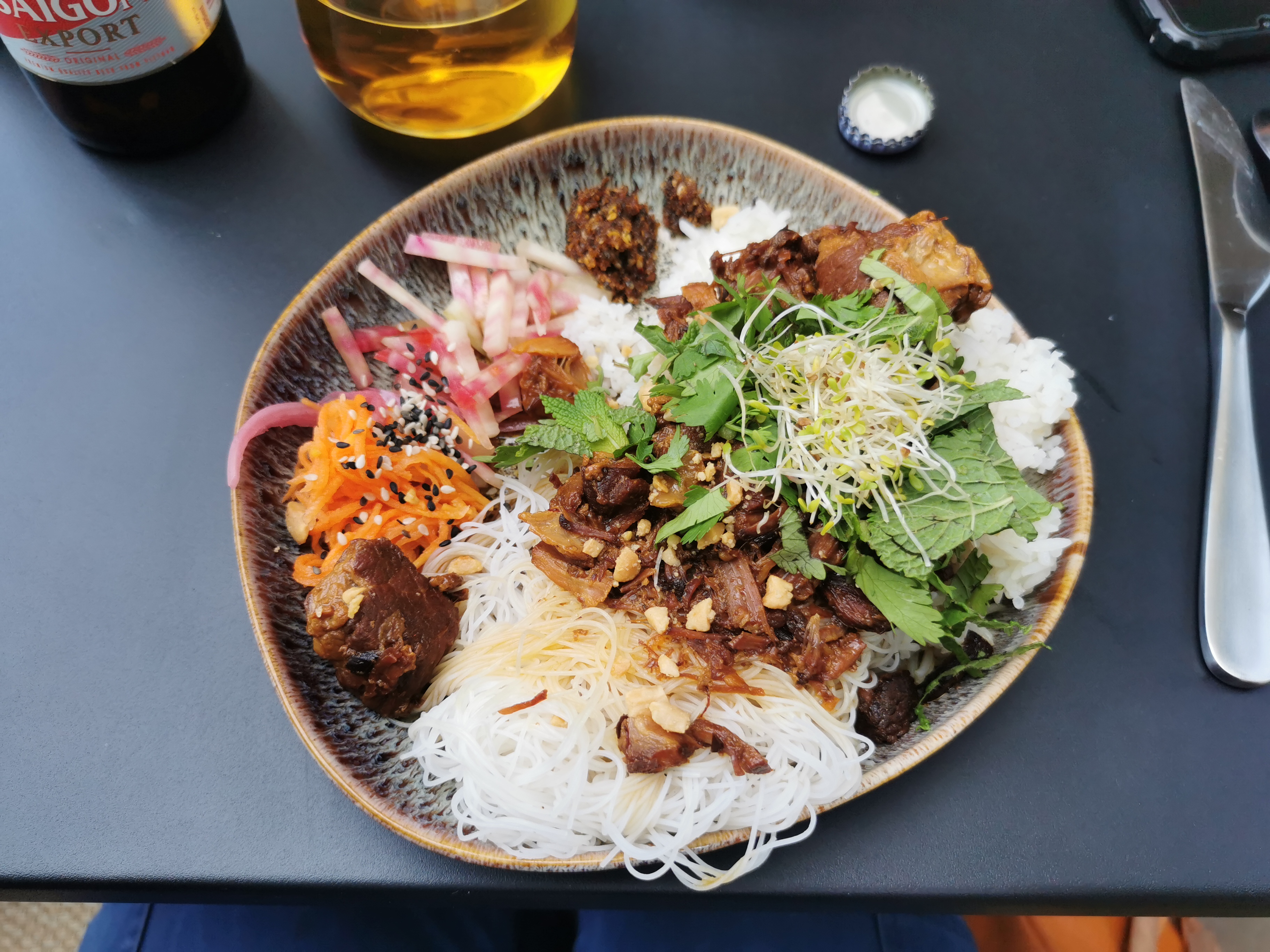 Un plat très bien équilibré entre légumes, vermicelles de riz et viande, le tout avec un goût excellent. 🤤 Mention spéciale pour les nems tout simplement délicieux.