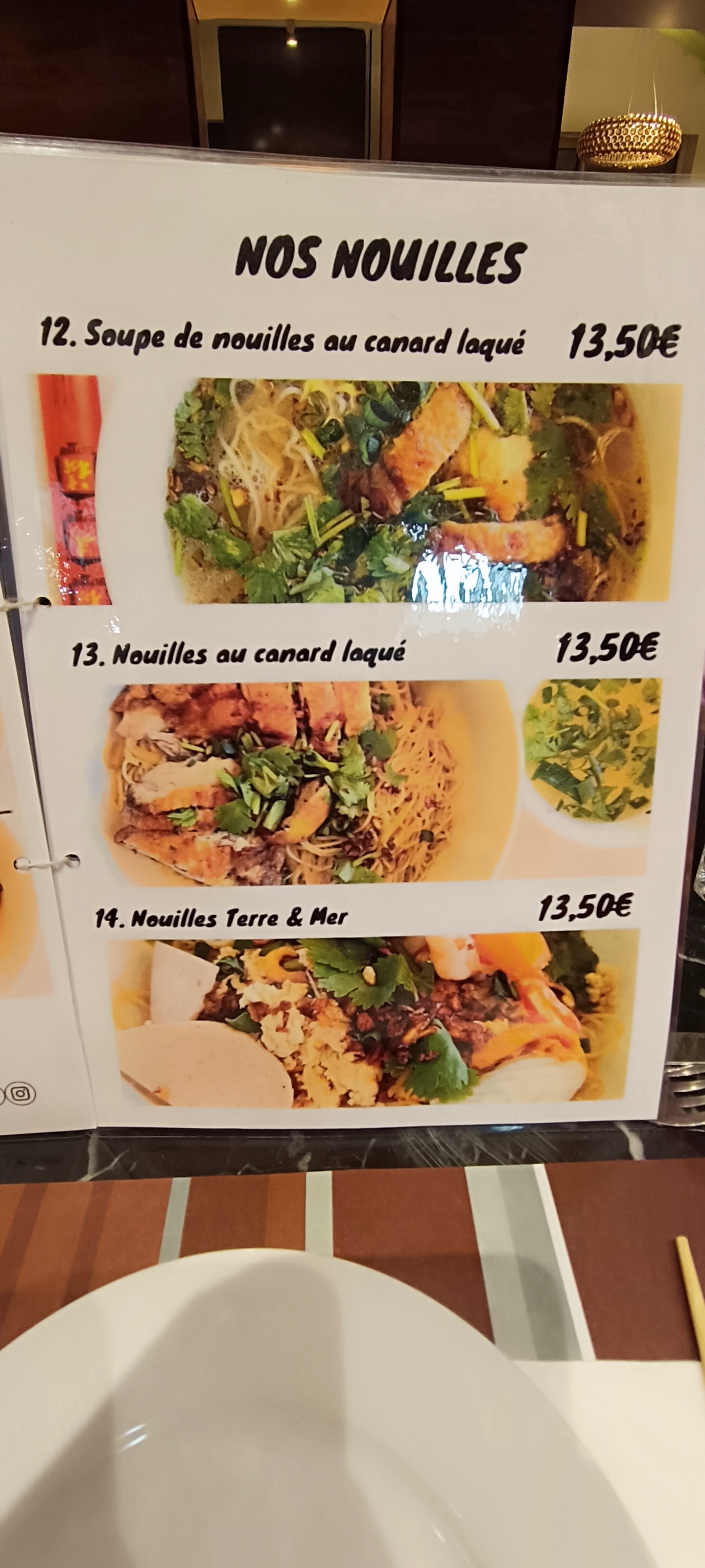 Excellente découverte, le gérant est adorable Rapport qualité prix au-delà de mes attentes, et portions généreuses (entrée + plat pour 17€) J'y retournerai, il y a une formule du midi à 13,50€ Je recommande chaudement à tous ceux qui veulent manger vietnamien sans se ruiner