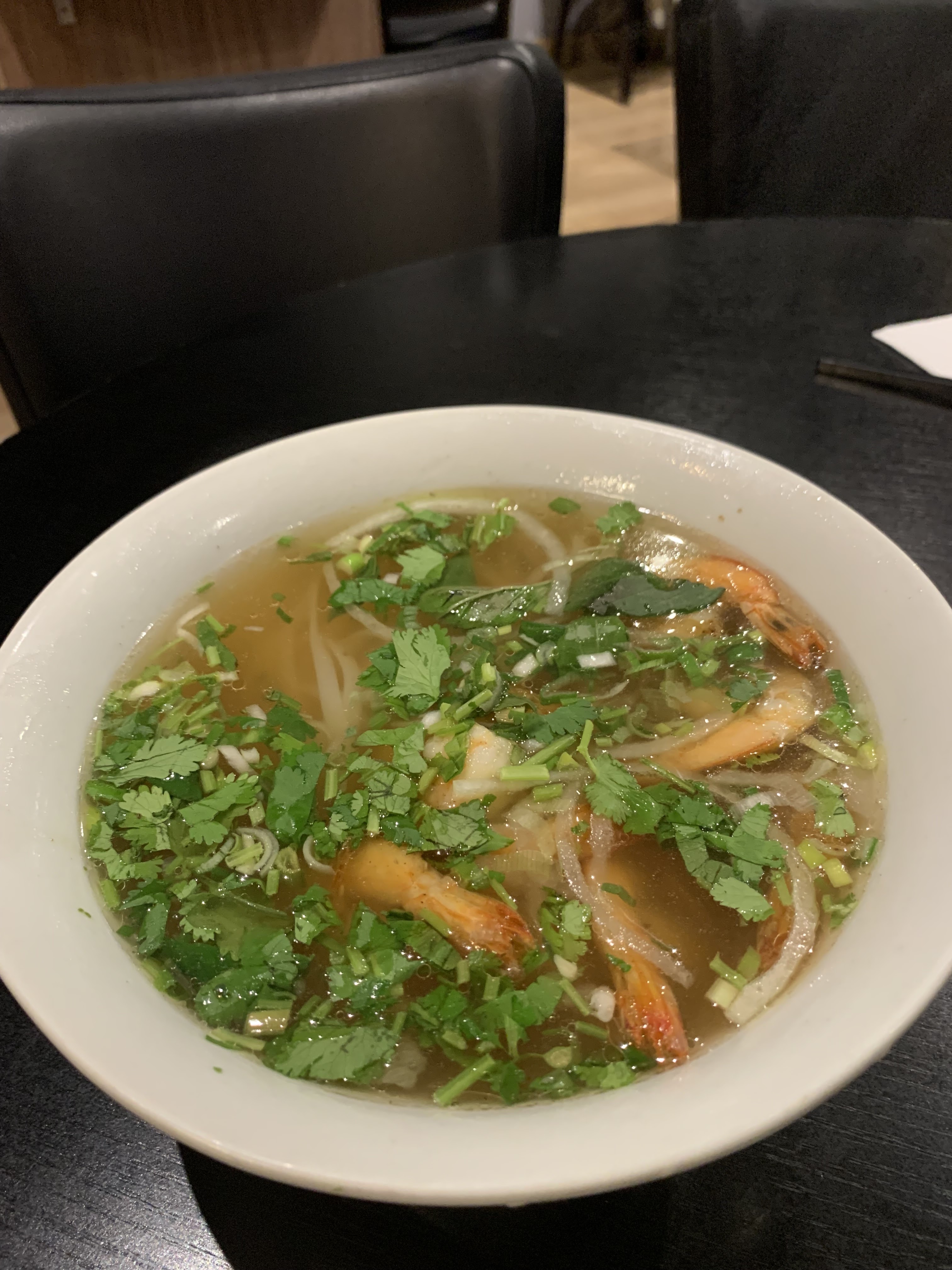 Bel endroit pour un déjeuner rapide. Pho décent mais très très bonne soupe de nouilles aux raviolis de crevettes! Le bouillon est équilibré et les raviolis étaient si pleines et fraîches ! Chauffe-automne parfait.