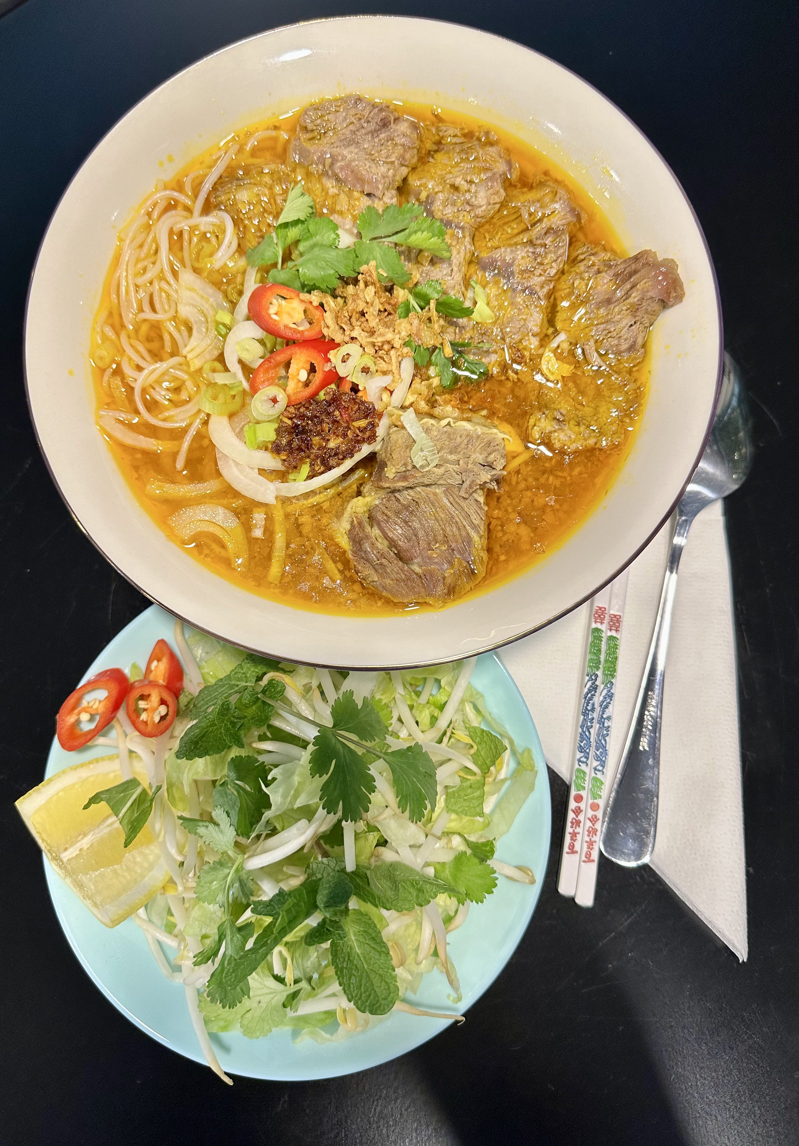 Très bon phô. Avec un bouillon remplit de beaucoup d’épice.