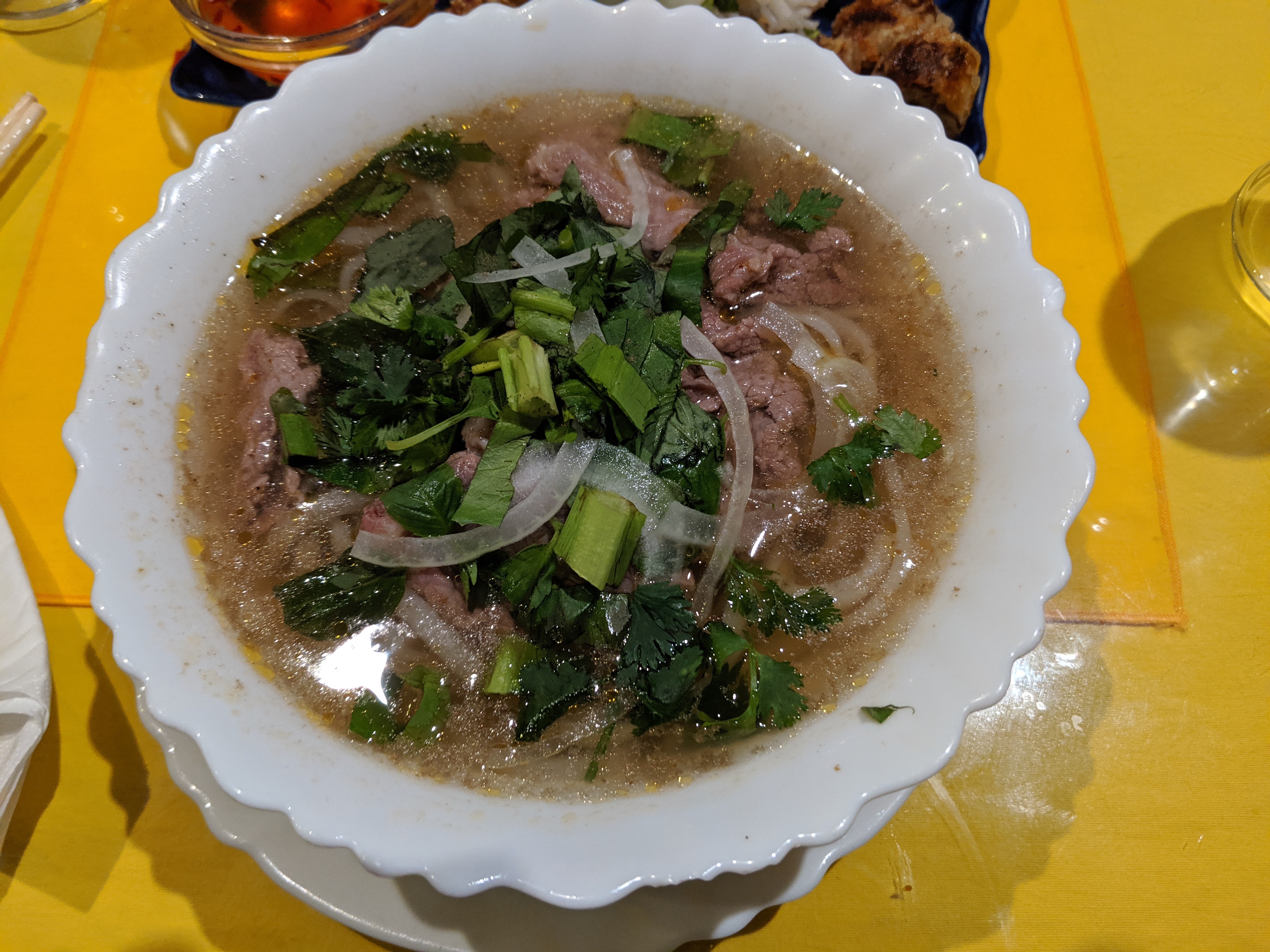 Un des meilleurs pho que j'ai pu manger (quantité, qualité, gout du bouillon 🥰), + service adorable et c'est pour ca que j'y retournerai pour tester d'autres plats à la carte!
