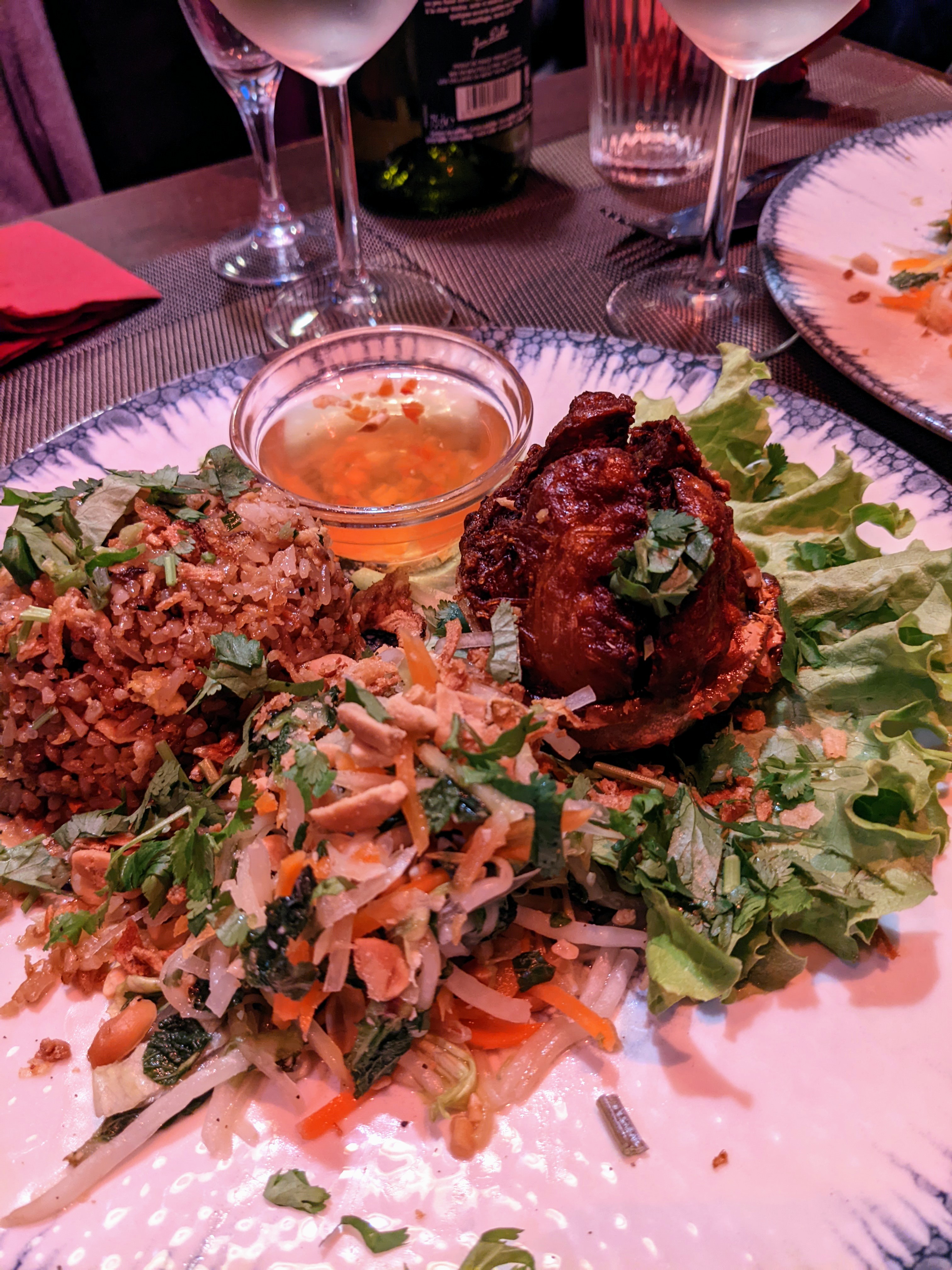 Posté le 08/09/2024 à 19:59"Génial de A à Z. Fraîcheur magnifique. Probablement parmi les meilleurs vietnamien que nous avons fait (même si la cuisine est à peine trop européenne pour moi. Il manque peut-être quelques herbes aromatiques type Tia tô ou autres). Tout est très bon, frais, soigné, généreux, croquant, croustillant,… assaisonnements parfaits et sauces savamment dosées. Service agréable. Déco sympa. Hâte d’y retourner."